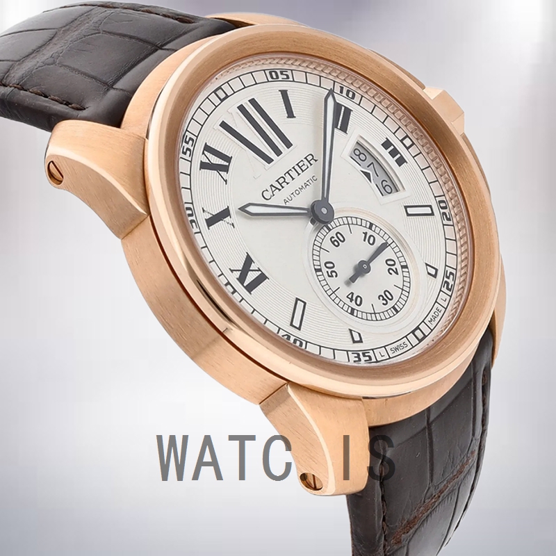 Cartier Calibre 42mm W7100044 Men's Rose Gold-tone Silver White Dial