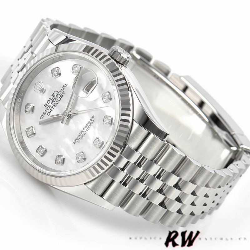 Rolex Datejust 126234 White Mother of Pearl Diamonds Dial 36MM Unisex Replica Watch