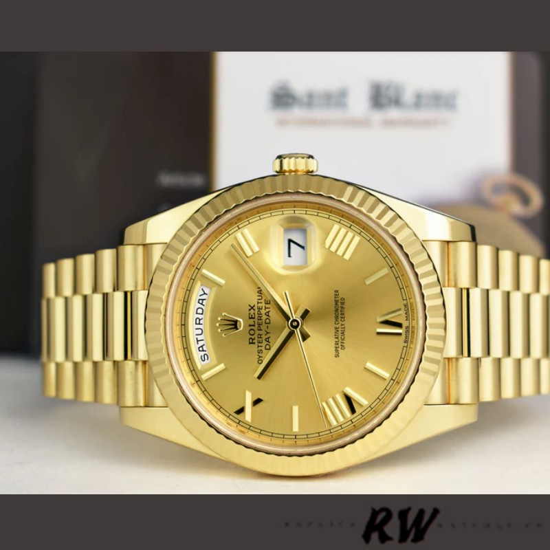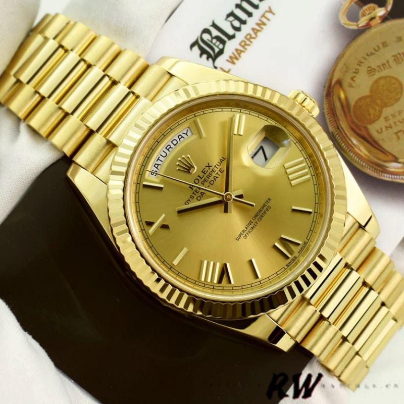 Rolex Day-Date 228238 Champagne Roman Dial Fluted Bezel 40mm Mens Replica Watch