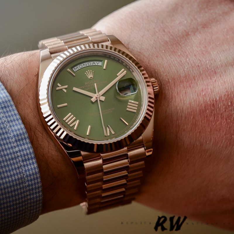 Rolex Day-Date 228235 Green Roman Numeral Dial Fluted Bezel 40mm Mens Replica Watch