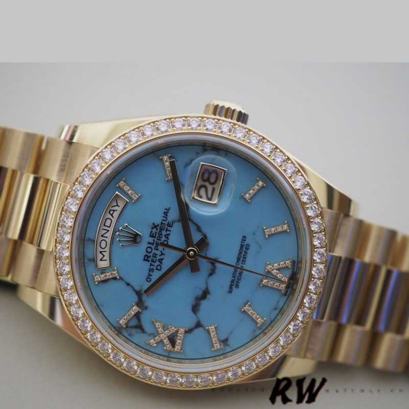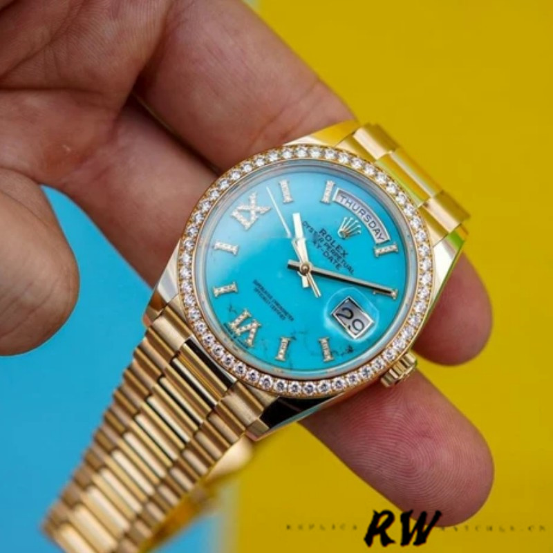 Rolex Day-Date 128348RBR Turquoise Diamond Dial Yellow Gold 36MM Unisex Replica Watch