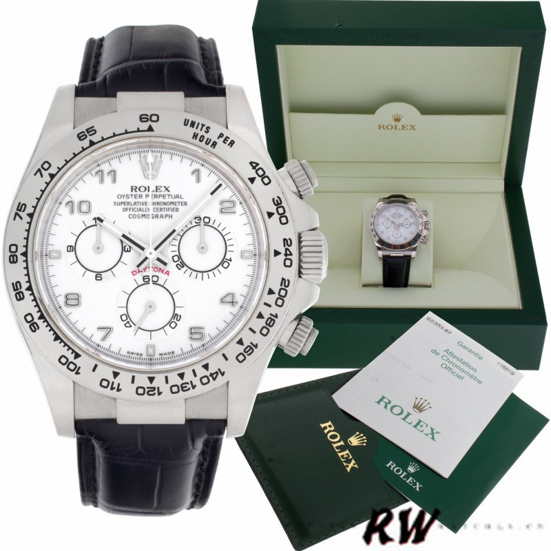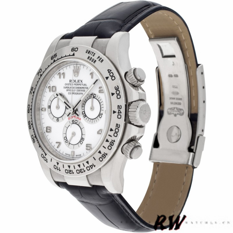 Rolex Daytona 116519 White Dial Black Leather strap 40mm Mens Replica Watch