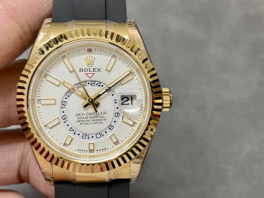 Rolex Sky Dweller 326238 Yellow Gold White Dial 42mm Mens Replica Watch